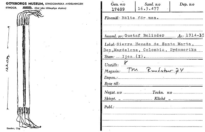 GOTEBORGS MUSEUM, ETNOGRAFISKA AVDELNINGEN ETNOGR. maavek. (Det icke tillämpliga strykas) r.< Elanders, Gbg _ Gen. 11:0 17489 Saml. n:o i 16.3.477 Dep. n:o Föremål: .B.ä.lt.e...:fär_..ma.n. Insaml. av...