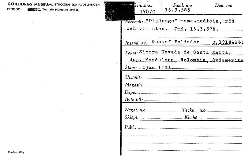 • Katalogkort ur Världskulturmuseets arkiv.