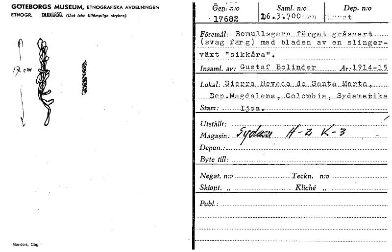 • GOTEBORGS MUSEUM, ETNOGRAFISKA AVDELNINGEN ETNOGR. ro..~. (Det icke tillämpliga strykes) Elanders, Gbg . Gen,.n:o - 17682 Saml. n:o 16•3'.7007.r:i Dep. n:o ••••,—. 2 t Föremål: ...Bo.mull2genn....färg... Visa hela