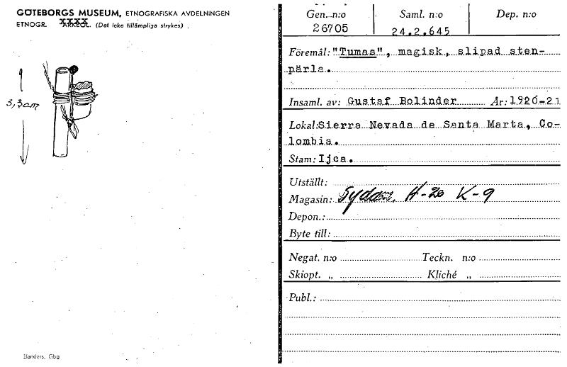 • Katalogkort ur Världskulturmuseets arkiv.