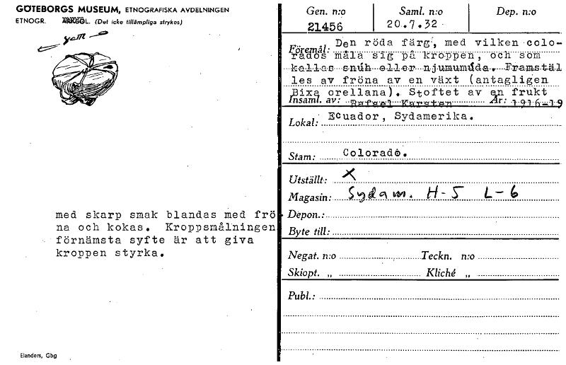 • Katalogkort ur Världskulturmuseets arkiv.