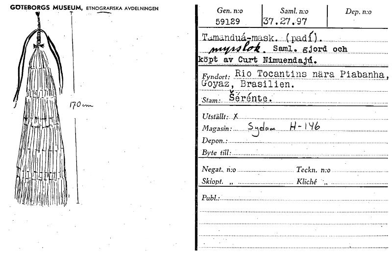 • GOTEBORGS MUSEUM, ETNOGRAFISKA AVDELNINGEN T 170 Gen. mo 59129 Saml. 37 . 27 . 97 Dep. n:o ramandujki pad . ~Kv* Saml. gjord och• köpt av Curt Nimendajii. F ndort: Rio Tocantins nära Piabanha, y Goya... Visa hela