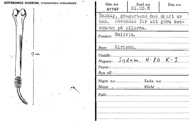 • GOTEBORGS MUSEUM, ETNOGRAFISKA AVDELNINGEN 17 4.~ Gen. mo Sam!. mo Dep. mo 47749 31.23.8 gnagartand ined ,dart av ben. .krivändes fur att göra sen- skaran på pilarna. Bolivia. Stam . Siriono. Utställ... Visa hela