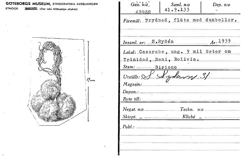 • GOTEBORGS MUSEUM, ETNOGRAFISKA AVDELNINGEN ETNOGR. Wenn (Det icke tillämpliga .strykes) Dep. n:o Saml. n:o 3 9 3 f:3 41.9 .1-33 Föremål: .Prydnad, fläta med. dunbollar. Insaml. av: S.Ryden Lokal: 0... Visa hela