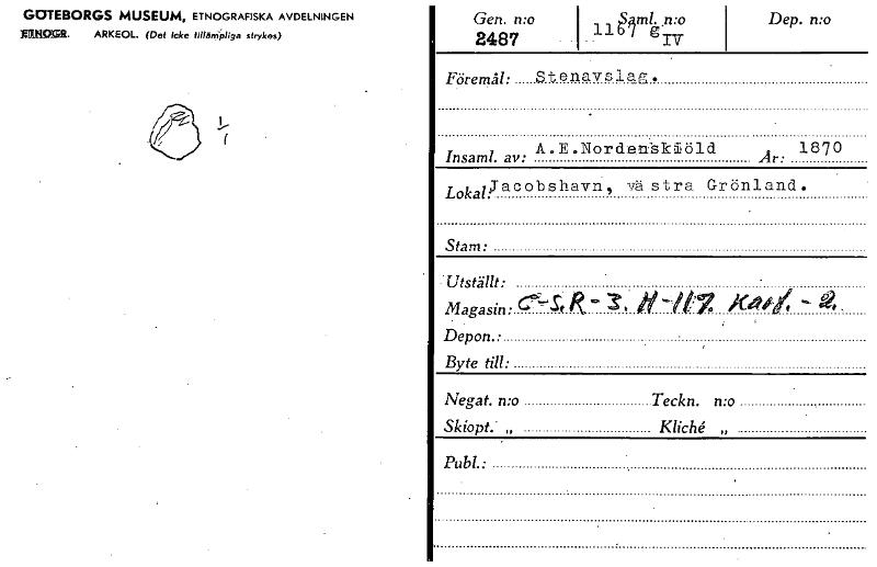 • Dep. n:o GOTEBORGS MUSEUM, ETNOGRAFISKA AVDELNINGEN ~MR. ARKEOL. (Det Icke tillår4oliga sfrykes) Gen. n:o 2487 Saml. n:o 11 b7 g' IV Föremål: Stenavslag. A . E .Nordelfskiöld 1870 Insaml. av: Är: Lo... Visa hela