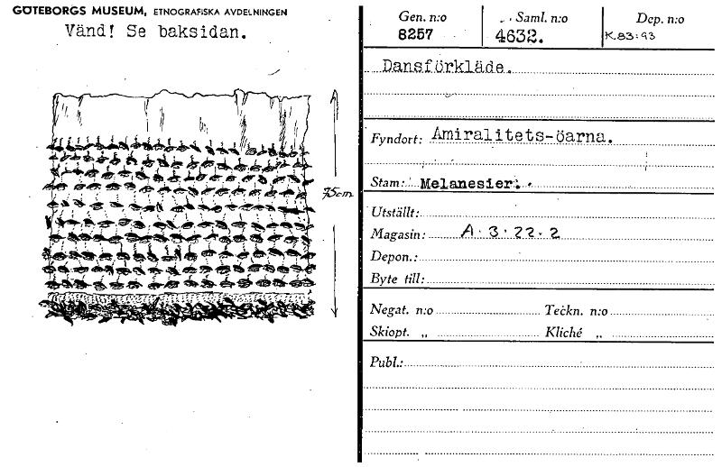 Gen. n:o 8257 - • Samt. n:o 4632. Dep. ti:o 13(.83: 1 GOTEBORGS MUSEUM, ETNOGRAFISKA AVDELNINGEN Vänd! Se baksidan. Dansförkläde. -------V---1'r--Yf;" h 4.4.14.1.e444,45-4,4,:k 4, 4,44///10.4 t-,kt 4; • -.' '°""V °1"114,4" 4=4»~.4.-#-,#,44‘70*7,ek-1■■ 5 ',' 4■-,..i '-, 's■-,9■Irt■ .e.te- -,-.1---"-P, -1,1.4- 4414_,--,å7. 4,■t,--■,,44,4 ,.4-4.' ,4-4,0:e*slir-2,4t(-22~-Ktip-e‘03449ere• ''åk4,4e,11MA,,,akh,!=p6"-S-' re4-444,44,44:40i-*.ftrålffir--.. iifrekn,-t5.4s4K, 4-År .44-»- 44 tISS-fioita- , r.rrjr:373.7-7-riT7:777; =7.57,--.7-:,-;7---(=-,-------,-;-, fe : - •E:,..:: :::-..5- „44!;P'...''3 .4.. Fyndort: Amiralitets-öarna. Stam • Melanesier • Utställt: Magasin: A 3' 22. Depon.: Byte till: Negat. n:o Teekn. n:o Skiopt. „ Kliché „ Publ.: [ocr]