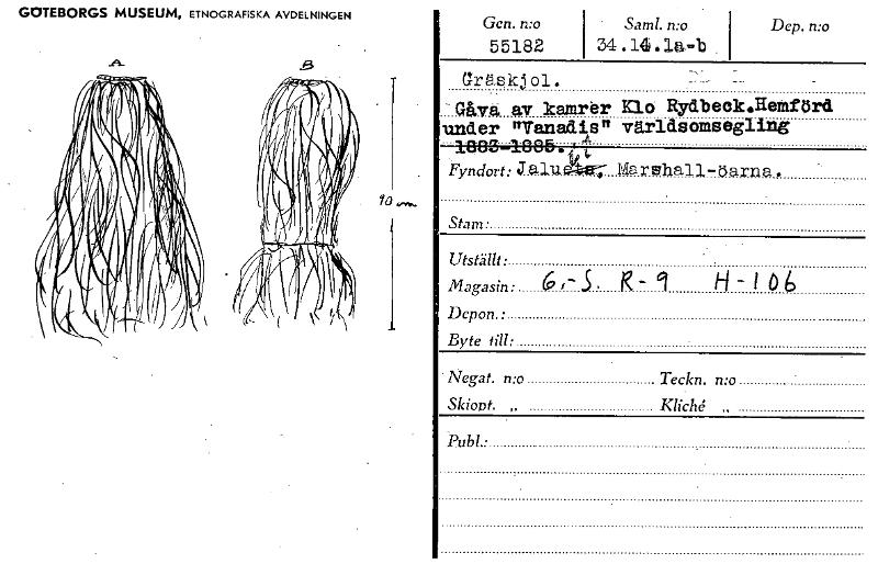 • GOTEBORGS MUSEUM, ETNOGRAFISKA AVDELNINGEN Gen. n:o 55182 Samt. n:o 34 .14 .111—b Dep. n:o _6 lo „ Gräskj ol . -0åva av kamrer Klo Rydbeok.Remförd under "Vanadis" världsomsegling 1883-1005.$ Fyndort: ... Visa hela