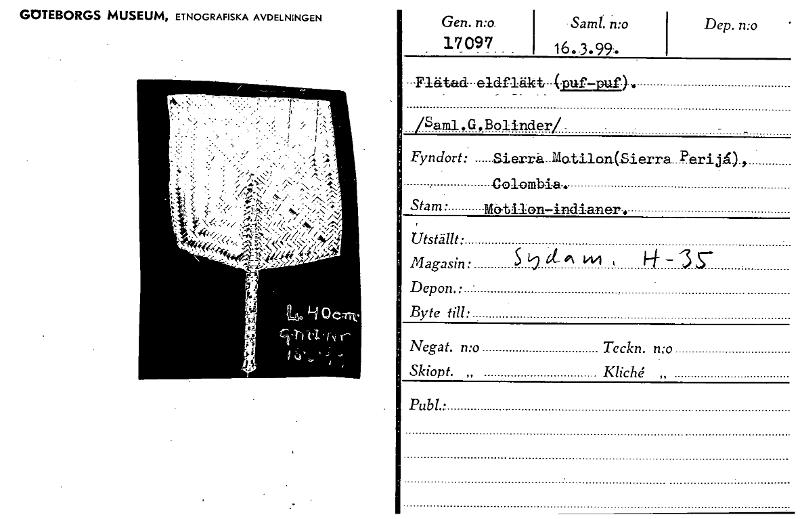 • Katalogkort ur Världskulturmuseets arkiv.