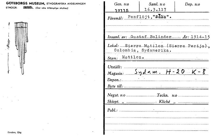 • GOTEBORGS MUSEUM, ETNOGRAFISKA AVDELNINGEN ETNOGR. iiikalät.. (Det icke tillämpliga strykes) Elanders, Gbg Gen. n:o 17115 Sam!. n:o 16.3.117 Dep. mo Föremål: Panflöjt,"S kan. Insaml.. av: ...G:u.s.t.... Visa hela