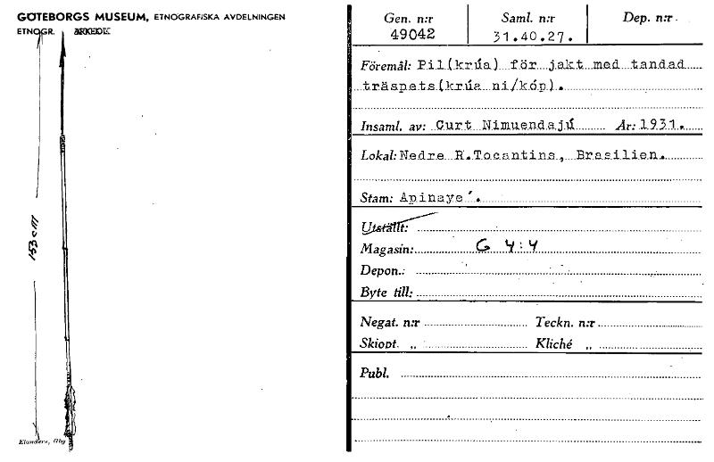 GOTEBORGS MUSEUM, ETNOGRAFISKA AVDELNINGEN ETN BFRICEDE i,R. Ehmders,699, Gen. n:r 49042 Saml. n:r 3 1 . 40 . 2 7 . Dep. n:r Föremål: .P1.1..tkinia)....f.ö.r....j.ak.• t....med...t.an.d.ad _träspts.(hrlia_niikx5m1. Insaml. av: ..e.urt...N.irmend.a.j.ki År: .1.9.3 1 , Lokal: N.e.dx.e....11..T.o.e.antin.s..,....Brae_t1i em... Stam: A.D. ina y e ' . Utseallr--- Magasin: G 9 t If Depon.: Byte till: Negat. n:r Teckn. n:r Skiord. „ Kliché Publ. [ocr]