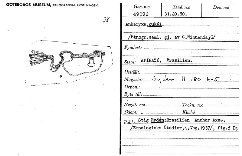 • GOTEBORGS MUSEUM, ETNOGRAFISKA AVDELNINGEN Gen. mo Saml. n:o Dep. n:o 49096 31.40.80• ..Ankaryxaronigi. /Etnogr.saml. gj. av C.Nimuendajti/ Fyndort: Stam • APINAYt, Brasilien. Utställt. Magasin: `S H... Visa hela
