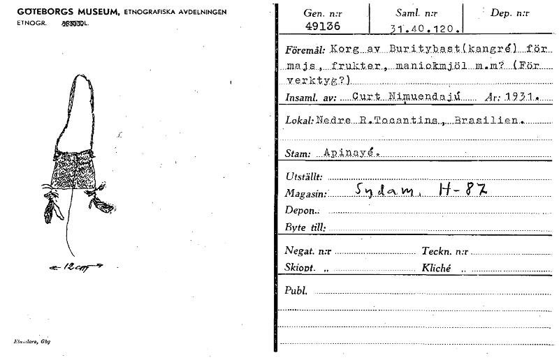 GOTEBORGS MUSEUM, ETNOGRAFISKA AVDELNINGEN ETNOGR. angfoL, «e- i2c,77--9' ElbacZers, Cbg Gen. n:r 49136 Saml. n:r 31..40.120. ' Dep. n:r Föremål: Korg av Buritybast(kangre....fdr._ ...ma.j.a..,._._frial...t.e.r.,._.m.a.n.i.o.ki`? (Fär ..v.e.r.kty.g?) Insaml. av: Curt NiAnuendajd År: 1931* Lokal:Ne_dr.e....11...52o.cantina..,....Braailin... Stam: Ap i nay4. Utställt: Magasin: S 11 r,Uk› 141 , I4 ‹? 7, Depon.- Byte till: Negat. n:r Teckn. n:r Skiont. „ Kliché. „ Publ. _... [ocr]
