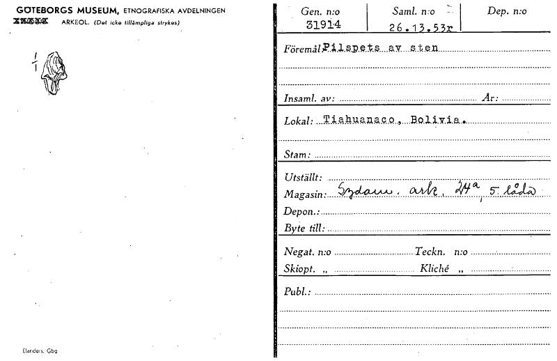• Katalogkort ur Världskulturmuseets arkiv.