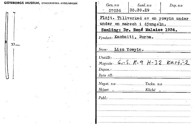 • Katalogkort ur Världskulturmuseets arkiv.