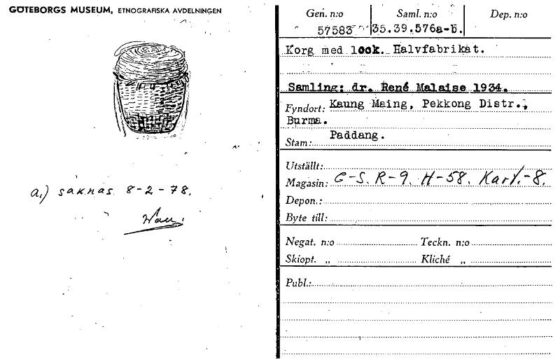 GOTEBORGS MUSEUM, ETNOGRAFISKA AVDELNINGEN 3:5..39476a-bl Saml. n:o Dep. n:oGen. n:o vt, torg. rised 100k—Halvfabrikat. Samling::_dn,„SenUMA1a1se_19.04. Fyndort: Kaung Maing, Pekkong Distr.4 Bnrna, Stam: Paddang. Utställt: Magasin: • C e- Depon.: Byte till: Negat. n:o Teckn. n:o Skiopt. „ Kliché„ Publ • 62 g a a .r e [ocr]