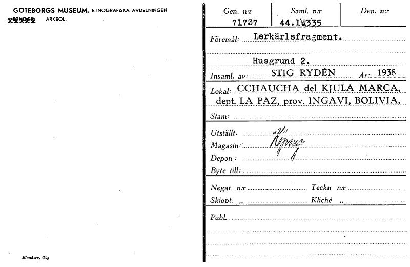 • GOTEBORGS MUSEUM, ETNOGRAFISKA AVDELNINGEN xstbigek ARKEOL. Elnoders, Gbg Gen. n:r 71737 Saml. n:r 44.1:335 Dep. n:r Föremål: Lerkärlsfragment. Husgrund R. Insaml. av: STIG RYD1N År: 1938 Lokal: ... Visa hela