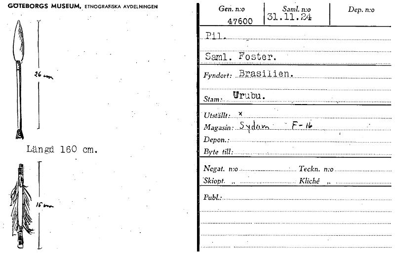 • GOTEBORGS MUSEUM, ETNOGRAFISKA AVDELNINGEN Gen. n:o 47600 Samt. n:o 31.11.24 Dep. n:o c'aml. Foster. 6 Fyndort: Brasilien. Stam • Urubu. Utställt • X Magasin: Depon.: Byte till: 5111(j, VVN Längd 160... Visa hela