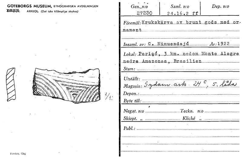 GOTEBORGS MUSEUM, ETNOGRAFISKA AVDELNNGEN Xffigak. ARKEOL. (Det icke tillämpliga strykes) Elanders, Gbg Gen._n:o ' 27230 Saml. mo 2 4 . 16 . 2 f f Dep. n:o Föremål: Kr.u.kskiir.v.a ..e,:v 19.r.uat.......