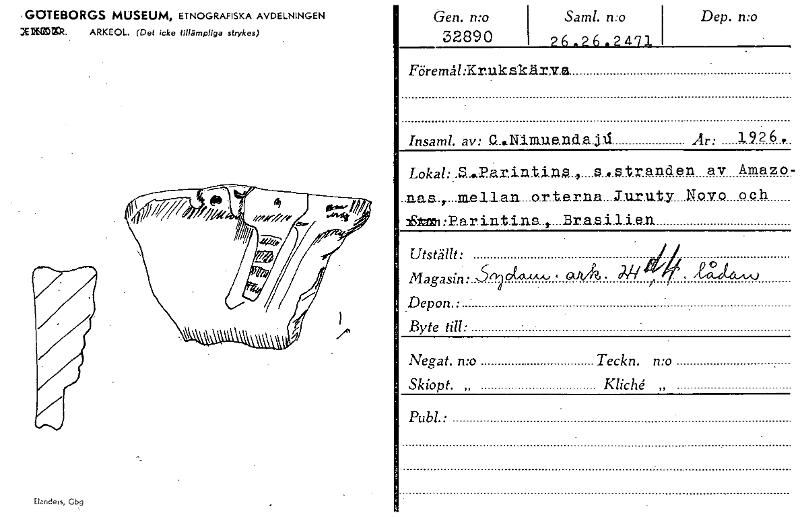 • GOTEBORGS MUSEUM, ETNOGRAFISKA AVDELNINGEN 3EMEZR. ARKEOL. (Det icke tillämpliga strykas) Elndels, Gbg Gen. n:o 32890 Saml. n:o 26.26.24'71 Dep. n:o FöremåhKruksk.är.v.a Insaml. av: C....N.imile.nd.a.... Visa hela