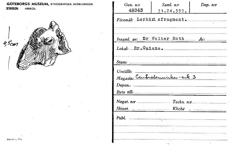 • GOTEBORGS MUSEUM, ETNOGRAFISKA AVDELNINGEN »Matt ARKEOL. E ho, del G by Gen. n:r 48363 i Saml. n:r 31.24.597. Dep. n:r Föremål: Lerkärl sfragment. Insaml. av: Dr Walter Roth År: Lokal: Br. ui.a.n.a.... Visa hela