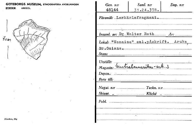 • GOTEBORGS MUSEUM, ETNOGRAFISKA AVDELNINGEN TIKOM. ARKEOL. Elanders, Gbg Gen. n:r 48144 Saml. n:r 31.24.378. Dep. n:r Föremål: ..Le.r.k_ärls.fragnie.n.t . ... Insaml. av: .1)...W.e.1...t.e.x....Ret.b. ... Visa hela
