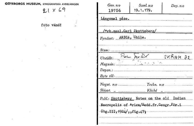 • Gen. n:o Samt. n:o 19756 19.1.179. Dep. n:o Långsmal påse. trk.saml.Carl Skottsberg/ Fyndort: ARICA, Stam • 57c;e1-c-'.7 SKg(gm Magasin • Depon.: Byte till: 594-4-c, Utställt: Negat. n:o Teckn. n:o... Visa hela
