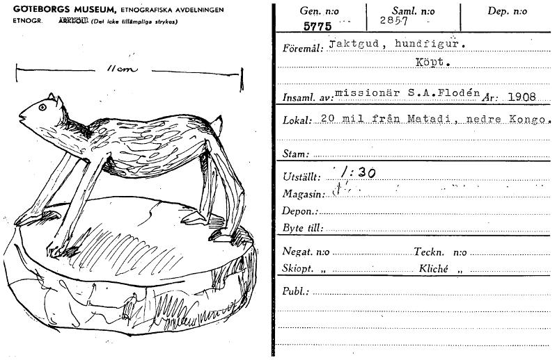 • GOTEBORGS MUSEUM, ETNOGRAFISKA AVDELNINGEN ETNOGR. aktbal (Def icke tilliimpliga strykes) Gen. n:o Saml. n•o 57 7 5 2 8 5.7 Dep. n:o Xaktgud , hundfigur. Föremål: Köpt . mission.är S.A.Floden Insaml. ... Visa hela