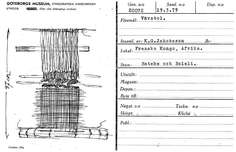 • GOTEBORGS MUSEUM, ETNOGRAFISKA AVDELNINGEN ETNOGR. 403181x?. (Det icke tillämpliga strykes) Gen. _n:0 20072 Saml. n:o 19.5.79 Dep. n:o Föremål: Vävstol. Insaml. av: le...G...alak.a.b.s.s.an År: Loka... Visa hela