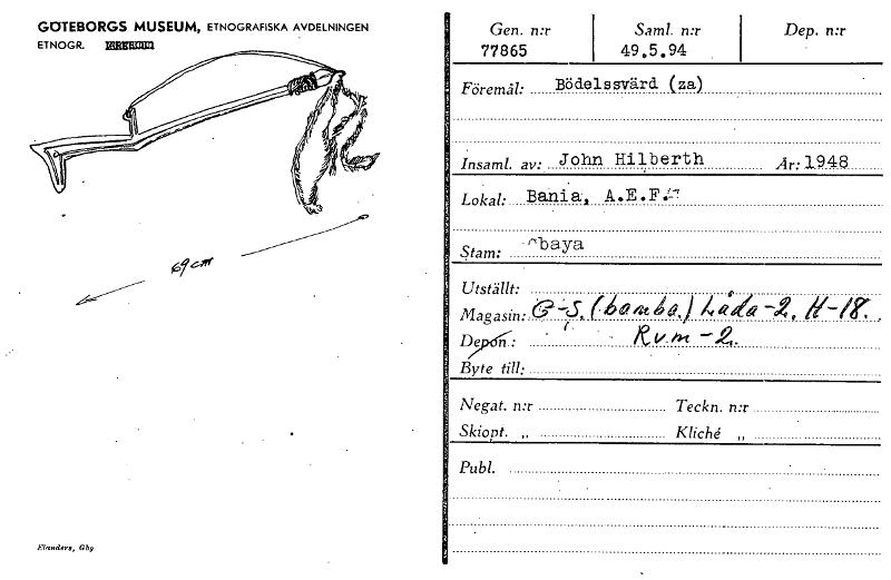 Elnwiers, Gbg Dep. n:r Gen. n:r 77865 Saml. n:r 49,5,94 Föremål: Bödelssvärd (za) Insaml. av: John Hi lb ert h Lokal: Bani a, A.E .F nbaya Stam: Utställt: ,ia. z, -.e, #--/r Magasin: j .. r De n. ...