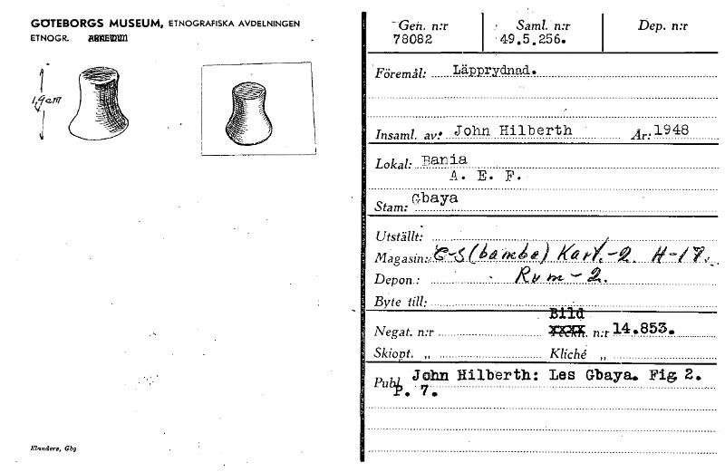• GOTEBORGS MUSEUM, ETNOGRAFISKA AVDELNINGEN ETNOG R. KRM= Gen. n:r Saml. n:r 78082 49 „5 256. Dep. n:r Föremål: Läpprydnad.. Insaml. John Hilberth Lokal: Barlia A. E. P.• År:1948 erbaya Stam: . BIL1 N... Visa hela