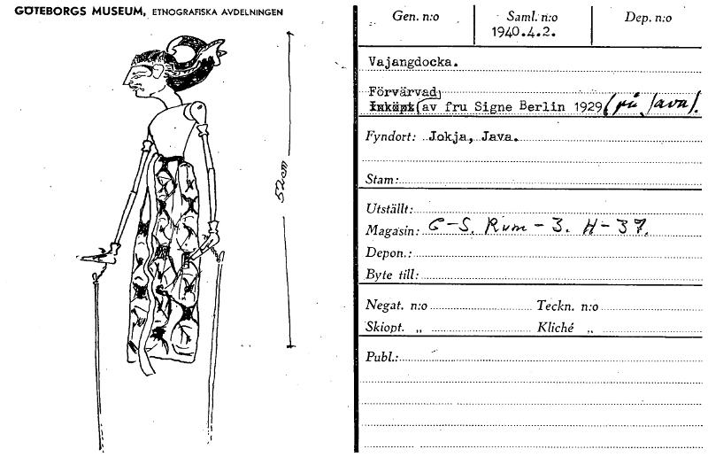 • GOTEBORGS MUSEUM, ETNOGRAFISKA AVDELNINGEN Gen. n:o - 1940 .4. 2 . Dep. n:o Vaj angdocka . Förvärvgli i / iRkäptrav fru Signe Berlin 1929"/4444. Fyndort: akj Java Stam • Utställt. Magasin: 3. 6° -3 ... Visa hela
