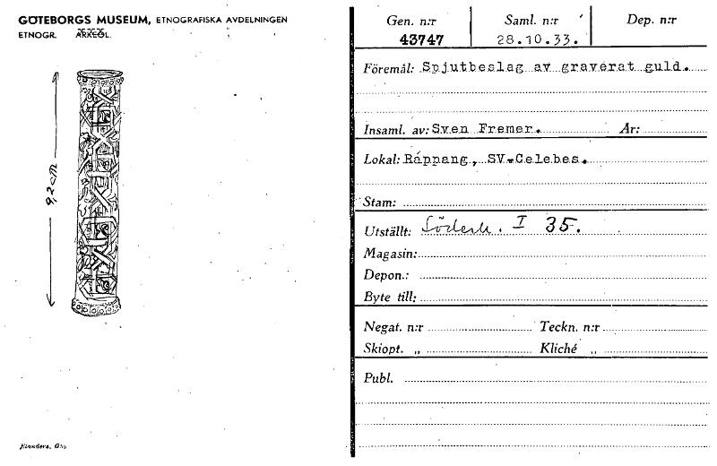 • Katalogkort ur Världskulturmuseets arkiv.