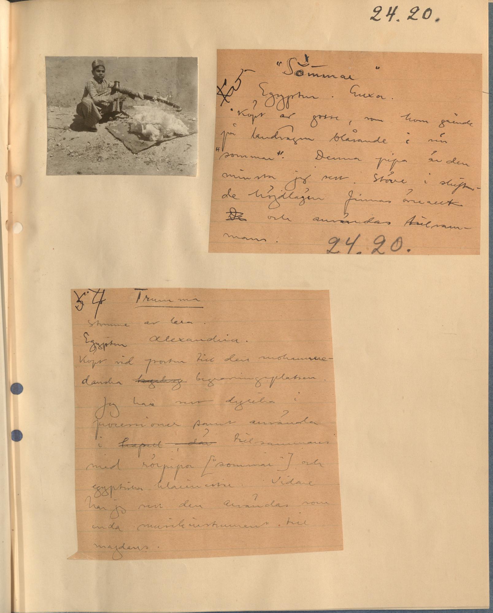 Etnografiska föremål från Egypten insamlade av amanuens Torsten Lenk och köpta av honom.