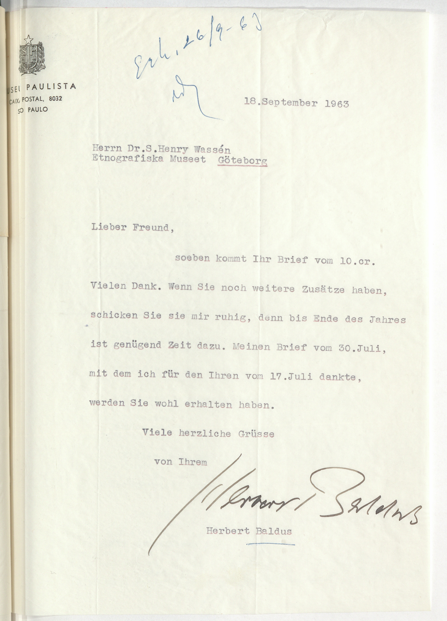 Tillverkad 1963-09-18 - i Brasilien av Baldus, Herbert.