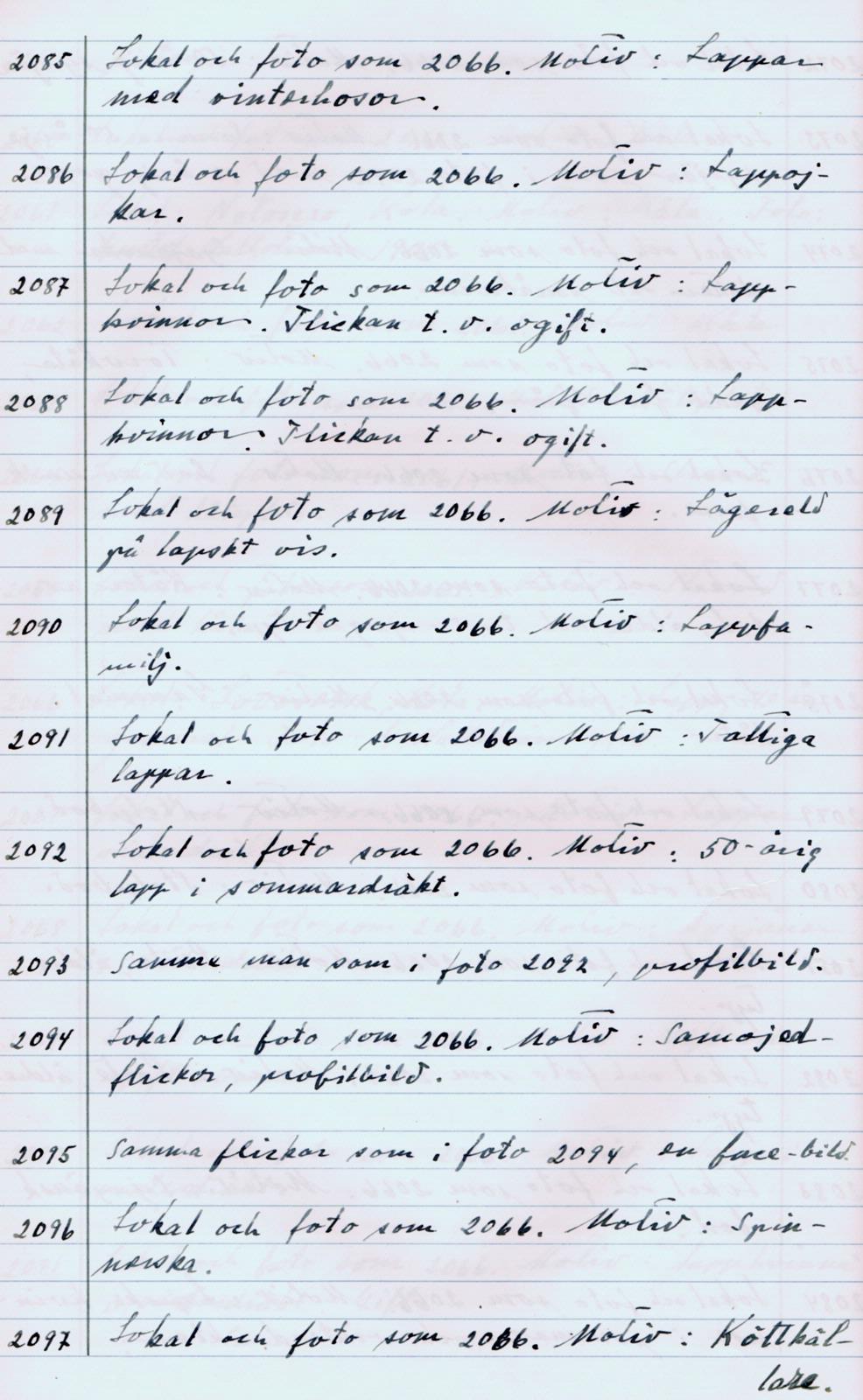• Boksida ur Bildarkivet, bok 2. Handskriven dokumentation av bilder.