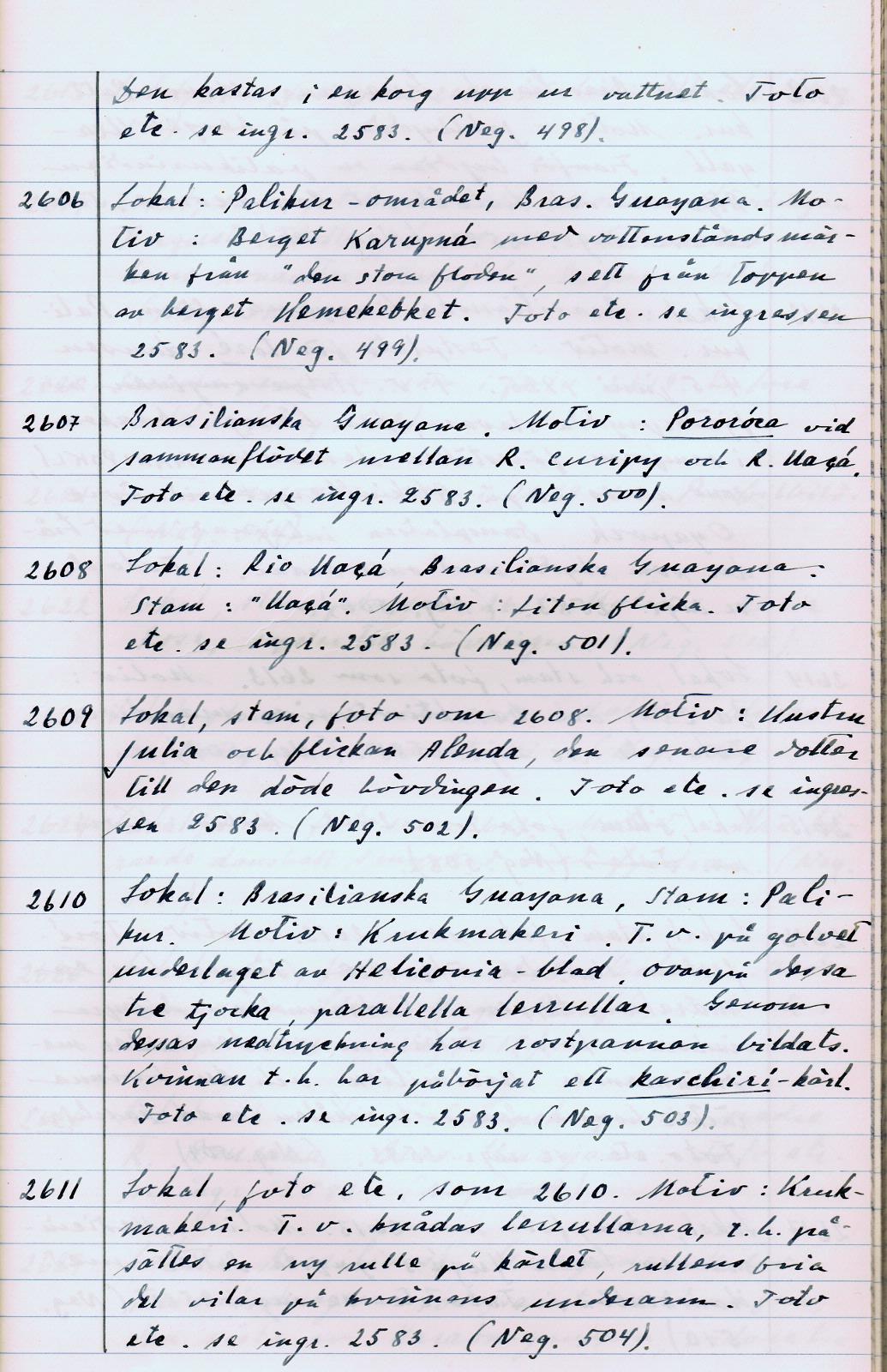 • Boksida ur Bildarkivet, bok 2. Handskriven dokumentation av bilder.