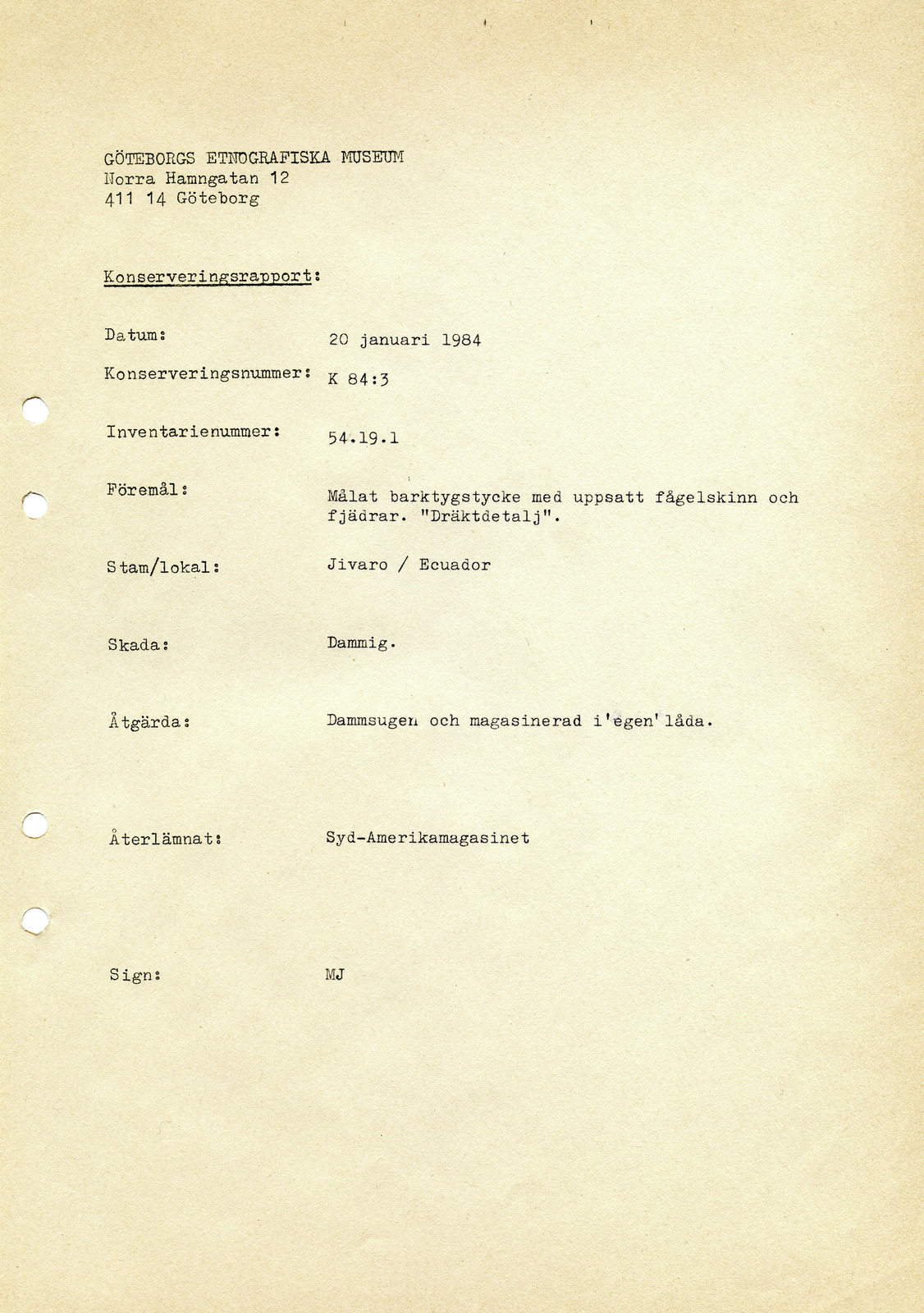konserveringsrapport, rapport