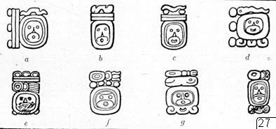 "Orm" eller "knut-" element använt vid dags- tecknet ahau. BAE-B. 57, fig. 38. Sk. 1-53. Detaljer till mayabildskrift om fickräkning o dyl. Bilderna efter S. G. Morley: An introduction to the study of the Maya hieroglyphs. Washington, 1915. BAEBull .57. Skioptikonbilderna framställda för Erland Nordenskiölds föreläsningar om mayakronologi i slutet av 1920-talet.