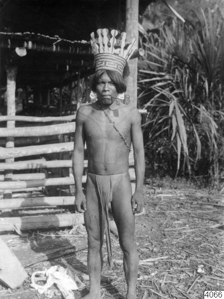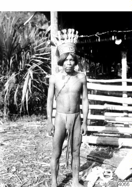 Ynglingen Camilo Hinche eller Curé i ceremonialkrona. Jfr. fotos. 4065. Se Norden- skiöld: Indianerna på Panamanäset. Sthlm., 1928, bild 28. Bildark: 4066. Neg. nr: 773.