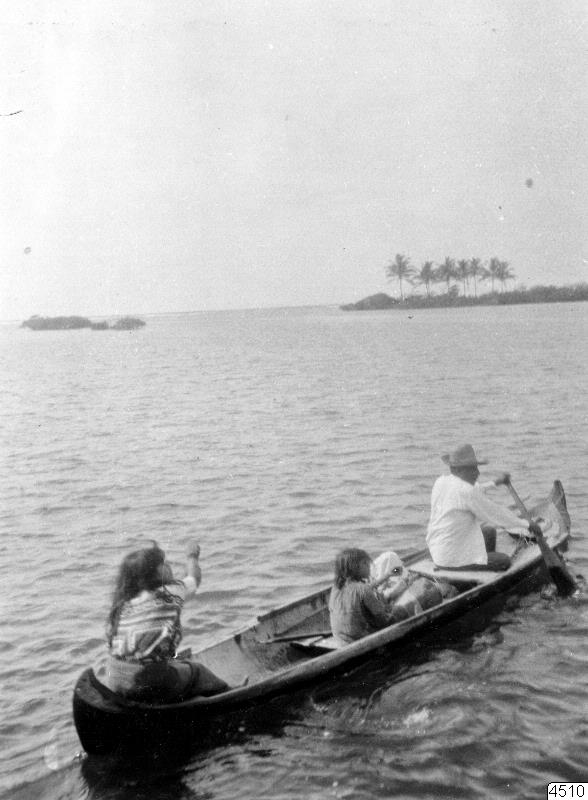 Cuna-indiansk kanot paddlas förbi expeditionskortern " Olga ". Se E. Nordenskiöld: Indianerna på Panamanäset, Sthlm 1928, bild 147.Bildark: 4510. Neg. nr: 1205.