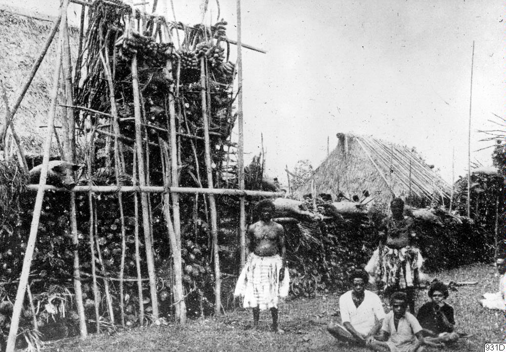 • Ceremoniellt utställande av föda: taro, yams och svin. The Colony of Fiji 1874-1931. Suva 1931. Mellan pp. 32 och 33.