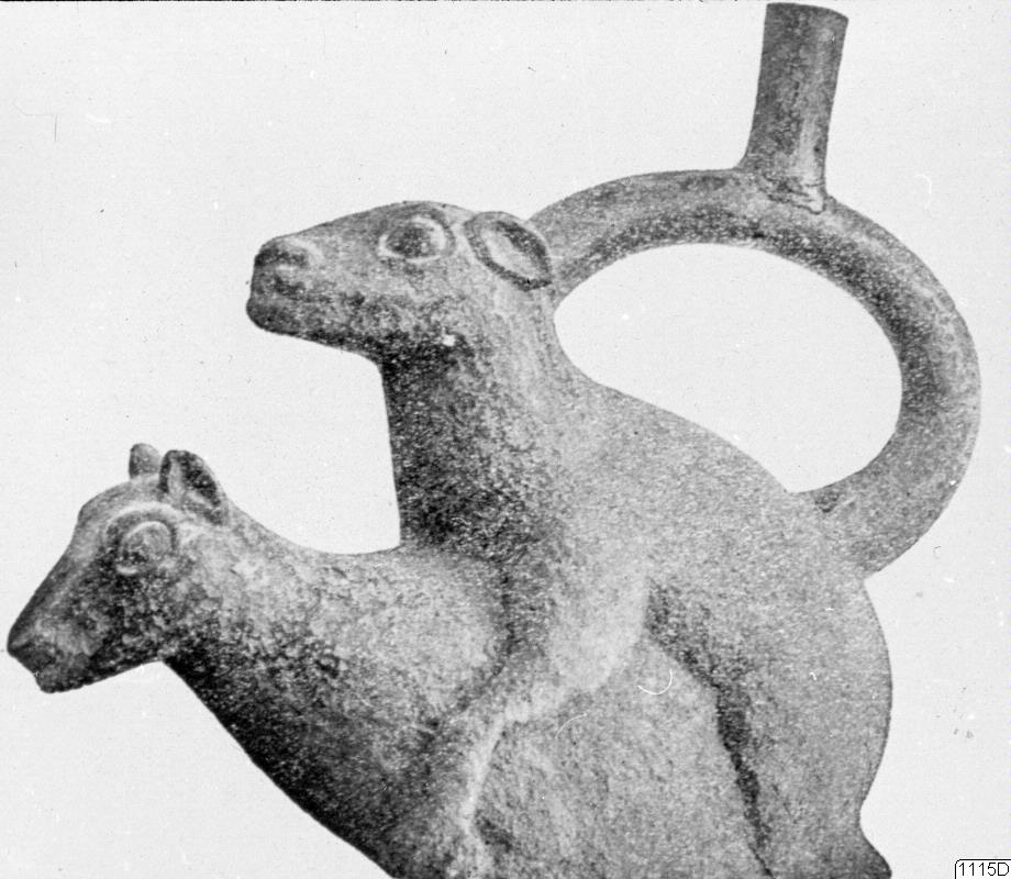 Peruanskt arkeologiskt lerkärl med motiv coitus mellan djur. Efter R. Lehmann-Nitsche: Zu den Anthropophyteia aus Alt-Peru, Taf. 19, fig. 1 (Anthropophyteia VI, p. 99).