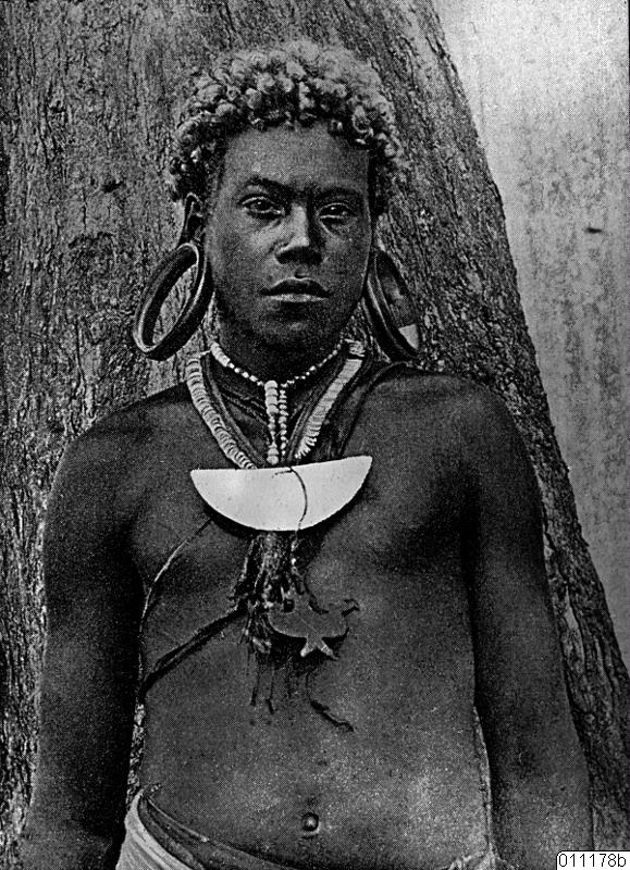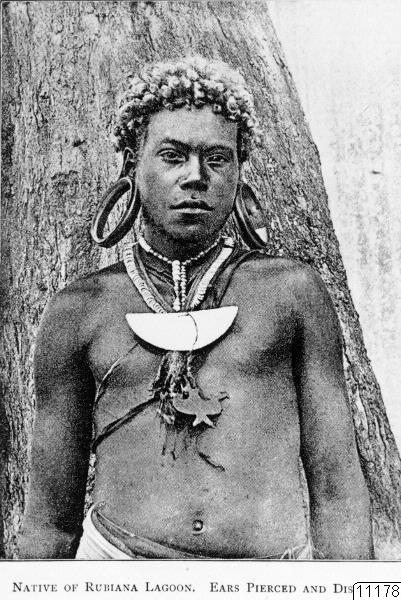 • Man med genomborrade och uttändja örsnibbar. Ch. M. Woodford: A naturalist among the headhunters. Melbourne o Sydney 1890. Mellan pp. 152 o 153.