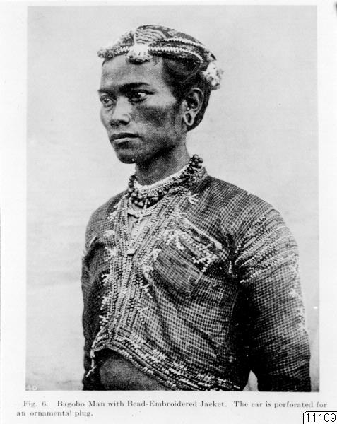 Motiv: Man med broderad jacka och genomborrade örsnibbar samt dansscen. Kläder och vapen influerade av mohammedaner. 2 fotos. Lokal: Filippinerna, Indonesien. Foto för skioptikon. Fotograf okänd, datum okänd. Erh: gm. köp av Dr. W. Kaunderns bildmaterial, 1947. Publ: A.L. Kroeber, Peoples of the Philippines. New York 1928. Figs 6 och 28. (katalogkort).