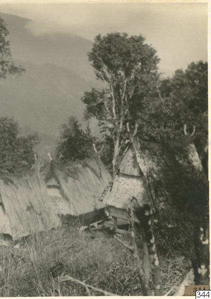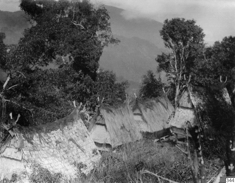 Motiv: Byn Pangana I Tole. Jfr. bildnr. 344 = först. av samma motiv. Lokal: Tole, Central-Celebes. (Mellan-Celebes; Paloe). Foto: Walter Kaudern, sep. 1947. Erh: gm. köp av Kauderns negativmaterial, 1947. Publ. W. Kaudern: I Celebes obygder, del I, bild 117, Stockholm 1921.: Ibild.:Ethn.Stud. in Celebes, Vol.1, fig.10,gbg.