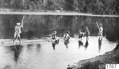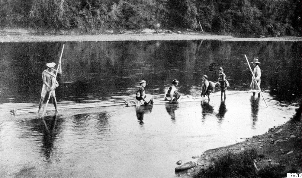 Överfart med flotte. A. Grubauer: Unter Kopfjägern in Central-Celebes. Leipzig 1913. Fig. 269, p. 507.