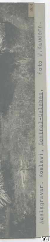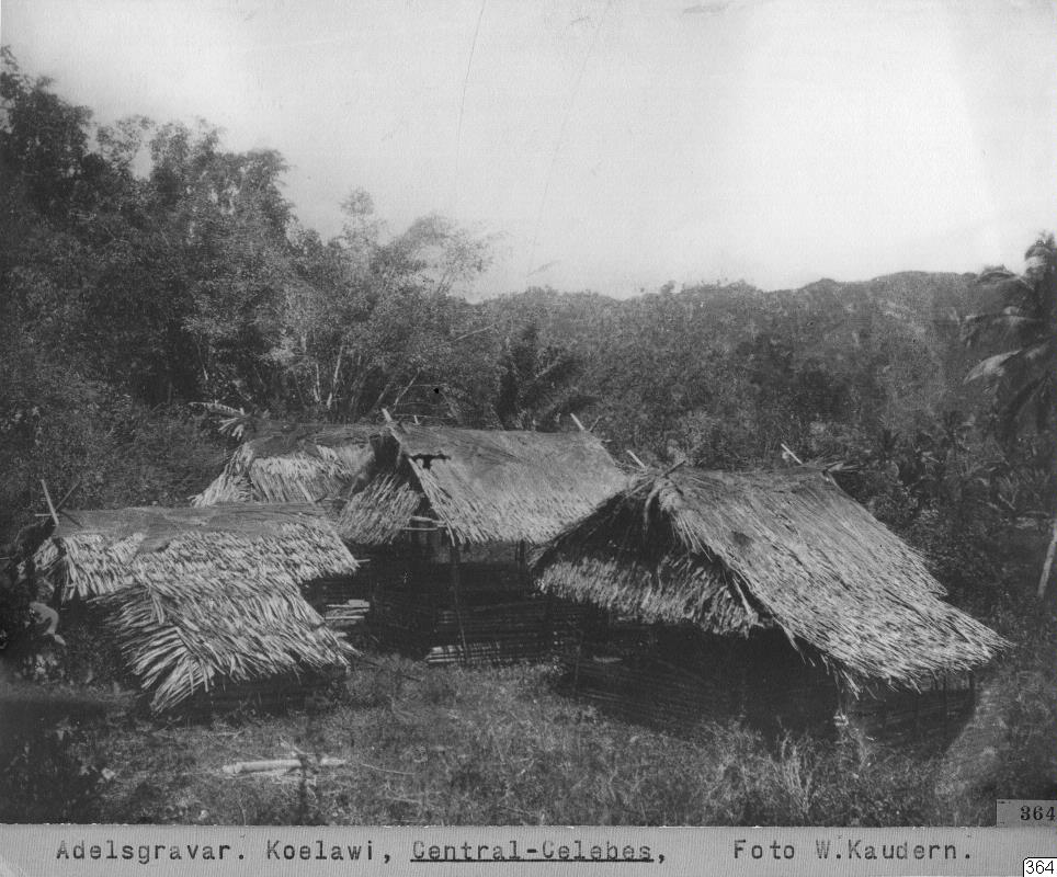 Maradika-gravar. W. Kaudern: I Celebes obygder. I. Sthlm 1921. Bild 95, p. 321. Ib.: Structures and settlements in Central Celebes. ESC 1. Gbg. 1925. Fig. 256, p. 373. Ib.: The noble families or maradika of Koelawi, Central Celebes. ES II. Gbg. 1941. Fig. 19, p. 73.