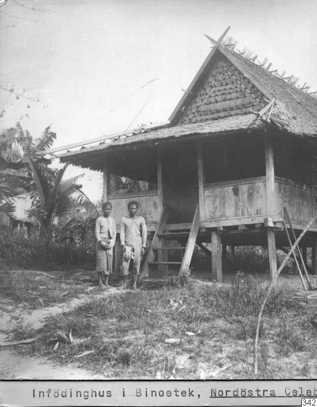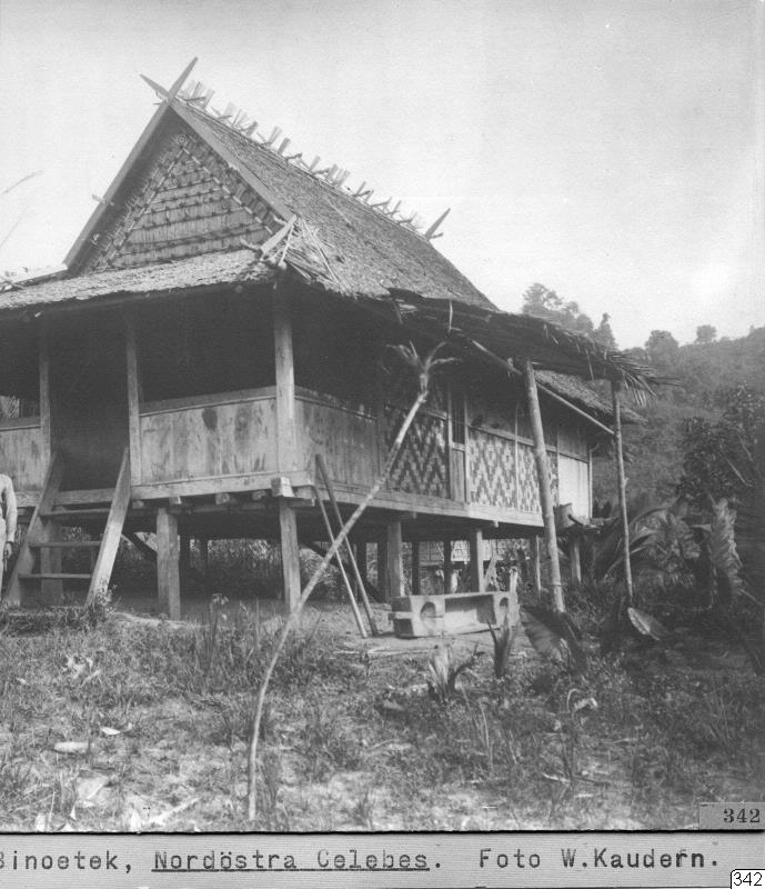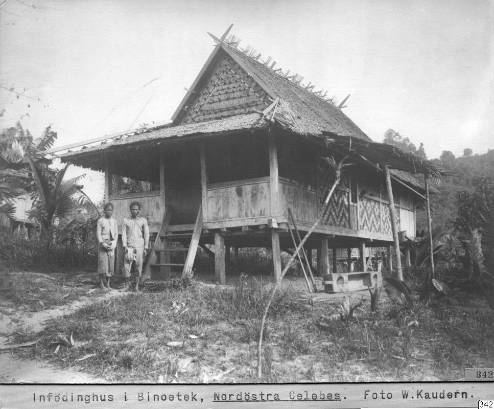 Bostadshus. Binoetek (by i Lamala), Banggaai, Poso, Celebes. W. Kaudern: I Celebes obygder II, Sthlm 1921. Bild 112, p. 278.