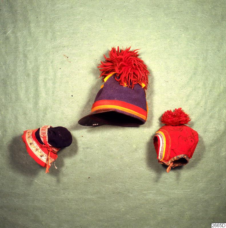 Kvinnomössa och sommarmössa från Norr- Kaitums lappby.Gossmössa från Jukkasjärvi socken i Torne Lappmark. Äv. nr. 1937.031.016, 1939.031.016