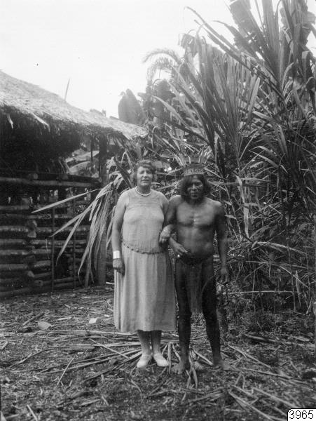 Medicinmannen Selimo och Olga Nordenskiöld. Rio Sambú, Darien, Panamá. Stam: Emperá-Chocó. Foto erhållet av Erland Nordenskiöld, tillika fotograf, 1928. Nordenskiöld: Indianerna på Panamanäset. Sthlm. 1928, fig. 42. (kontaktkort).